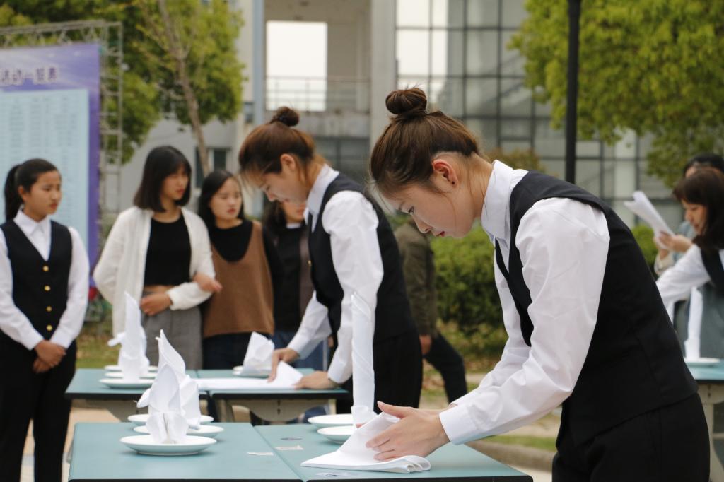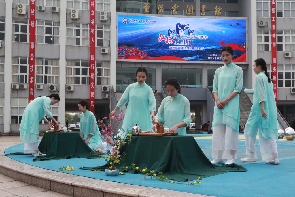 开幕式后,师生们在校园观看了各二级学院组织的“大力水手”、茶艺、花艺、中华经典诵读、公益绘画比赛、餐巾折花、英语单词“花样接龙”等技能比赛和展示活动。