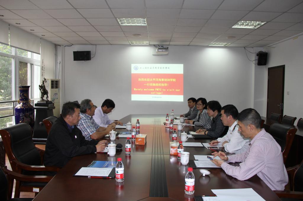 双方在行政楼103会议室进行座谈,并就相关合作事项达成一致意见,双方都表示,愿意继续加强两校的合作,并对合力共建浙江-巴新国际海事学院充满信心。