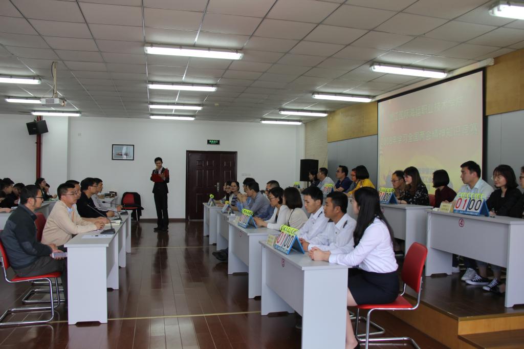 为了认真学习贯彻2018年“两会”精神,引导全校教职员工关注国家时政热点,全面把握党情和国情,深入理解习近平新时代中国特色社会主义思想,进一步坚定马克思主义信仰,更好服务我校“两个高质量”建设。5月9日下午,由校工会、宣传部主办,船舶工程学院工会承办的全国“两会”知识竞赛在国际海员培训楼三楼会议室举行。学校党委副书记胡国光、工会主席刘相等参加。