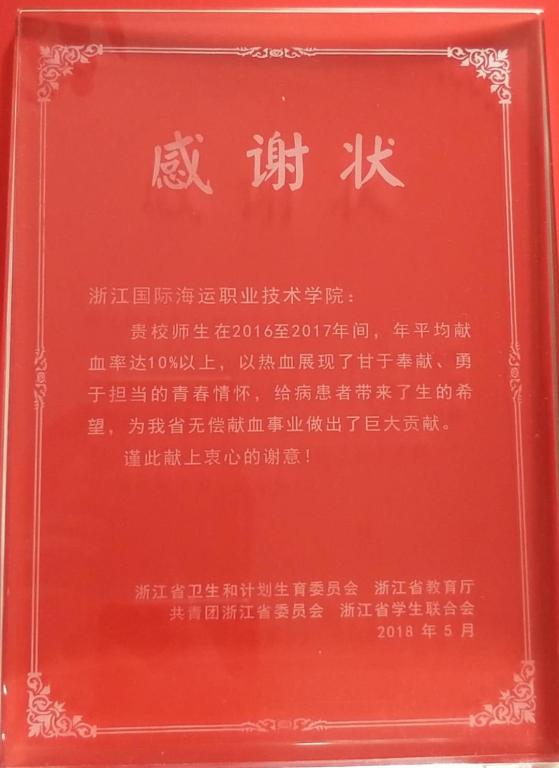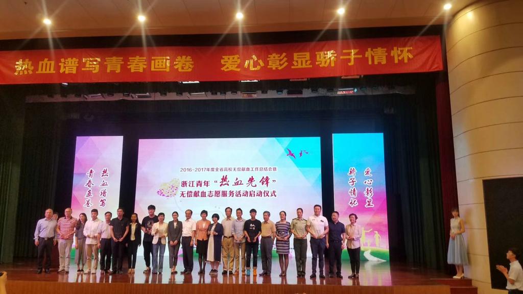 5月21日上午,2016-2017年度全省高校无偿献血工作总结会暨浙江青年“热血先锋”无偿献血志愿服务活动启动仪式在浙江中医药大学举行。我校被评为”无偿献血先进集体“,校团委书记徐盈被评为”省级组织发动先进个人“。