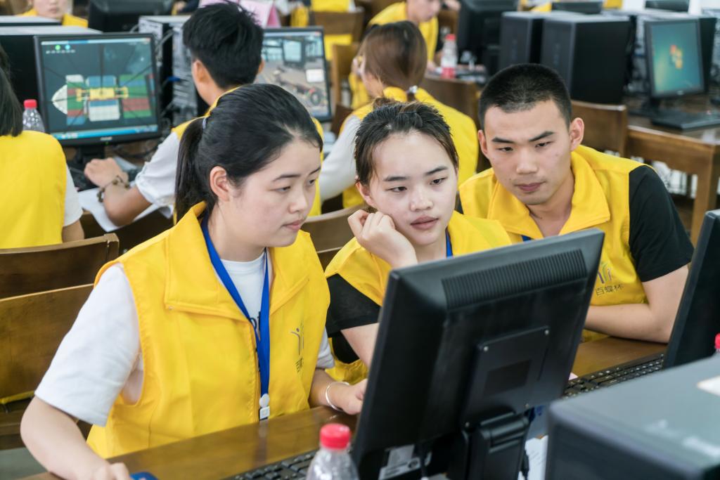 在下午的集装箱港口作业实施环节,选手们要根据上午制定的方案在虚拟仿真的集装箱港口中实施。他们在比赛中要用到集装箱岸边起重机、轮胎式龙门吊、集卡车、集装箱运输船舶、道闸设备、港口远程监控系统等模拟的港口设施设备,其规模和模拟操作都与现实高度一致。