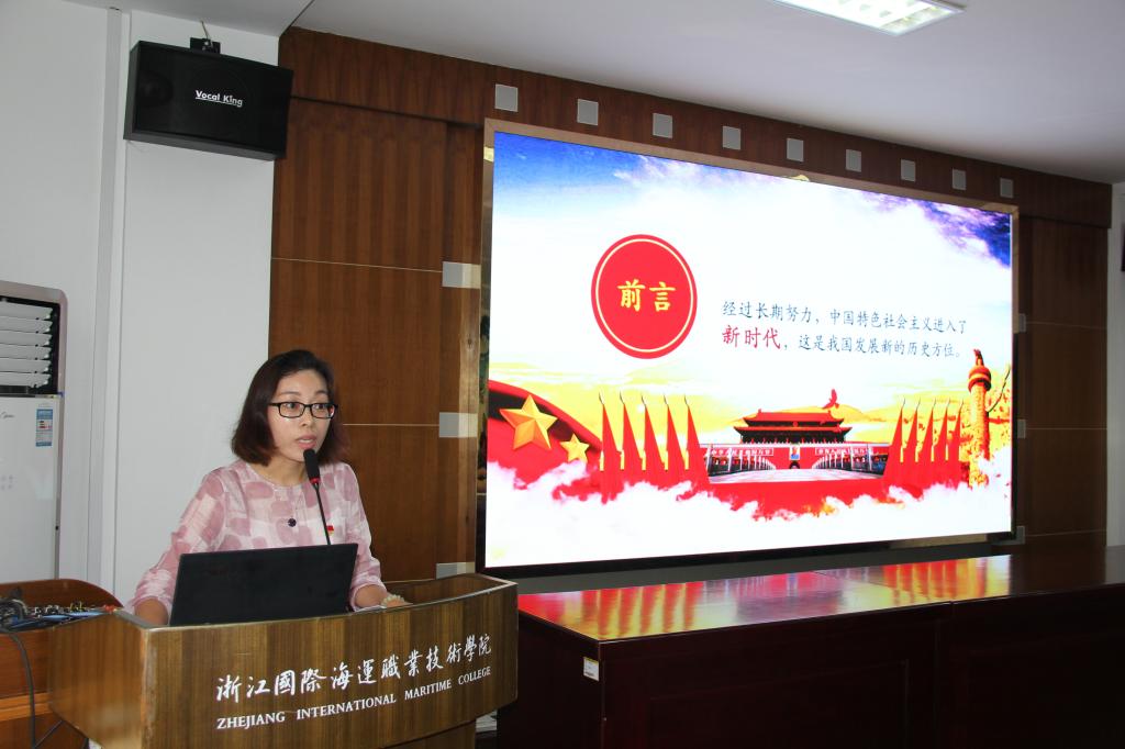 机关党总支第一党支部书记金洁在《用行动筑梦未来》党课中,以人民日报微视频《奋斗》为引子,引导大家跟随习近平的同期声,重温奋斗的艰辛,体会奋斗的幸福。随后,她以方志敏、黄大发、袁隆平、廖俊波、支月英等优秀党员事迹为例,从“坚定理想信念、大干实干勇于创新、关爱师生乐于奉献、尽心尽责敢于担当”四个角度出发,阐述党员如何用行动筑梦未来。