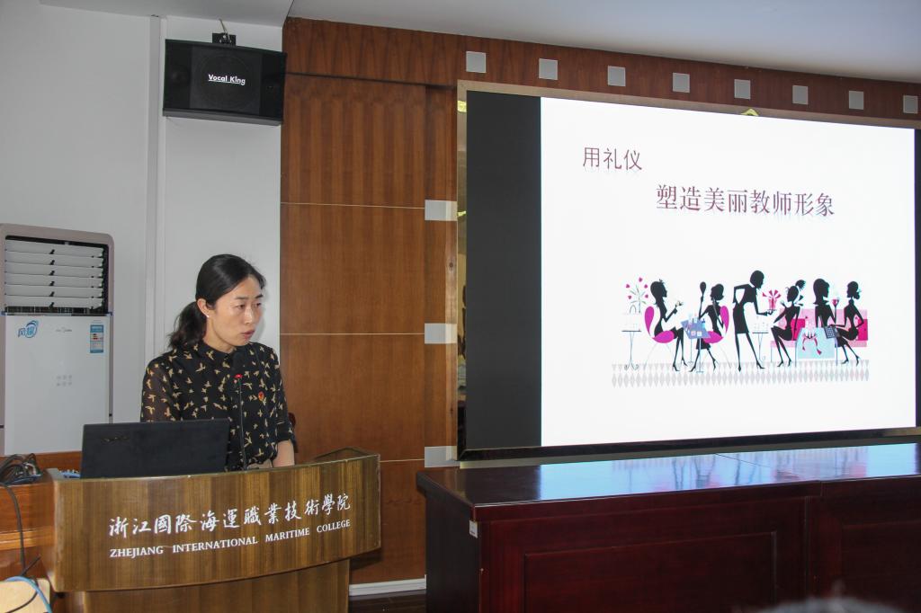 “教育工作者的全部工作就是为人师表”,机关党总支第四党支部书记郭娟从“中国最后一位女先生”叶嘉莹讲起,以《用礼仪,塑造美丽教师形象》为题,将党员教师如何知礼仪,讲礼仪,塑造“学识渊博、心灵美好、语言文明、仪态优雅、举止端庄”良好教师形象娓娓道来。