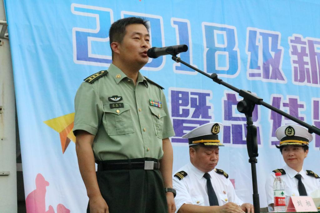 校党委委员、副校长张新杰代表学校对军训和会操表演取得圆满成功表示祝贺。他表示,此次参训的学校本部五个学院64个班级,2160多名同学经历了烈日和风雨的考验,充分展现了自己搏击困难的信心和勇气,展现了自己战胜困难的意志和能力,展现了新一代学子良好的精神风貌。他向积极参加军训并胜利完成大学第一课的同学们致以亲切的问候!向受到表彰的教官、班级、寝室和军训优秀学员表示热烈的祝贺!希望各位同学以这次军训为起点,把军训中形成的坚强意志、优良作风、团结协作的精神带到今后的学习生活中,牢记德行四海的校训,努力提高专业水平和综合素质,争做一名合格的社会主义事业接班人;把军训中养成的军人作风贯穿于今后的学习、生活中,做文明学生,争文明寝室,为我市创建全国文明城市和学校创建省级文明单位贡献自己的一份力量。
