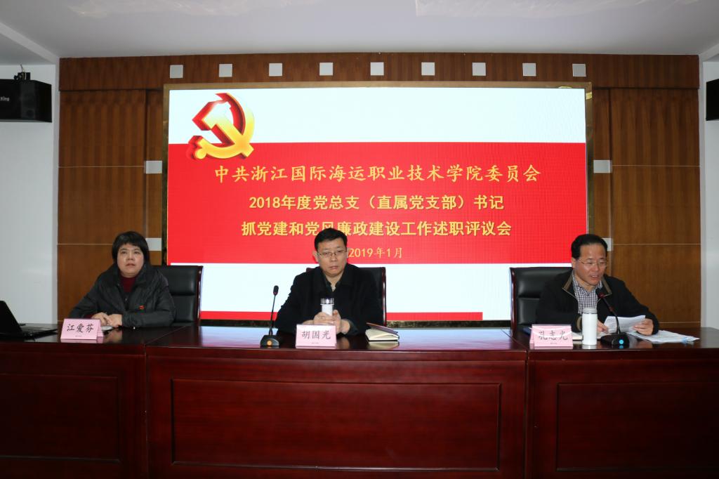 1月4日上午,学校2018年度党总支(直属党支部)书记抓党建和党风廉政建设工作述职评议会在行政楼401会议室召开。校领导胡国光、孔志光、江爱芬、孔志华,学校党务部门全体中层干部,各党总支(直属支部)书记、副书记、委员、组织员等40余人参会。