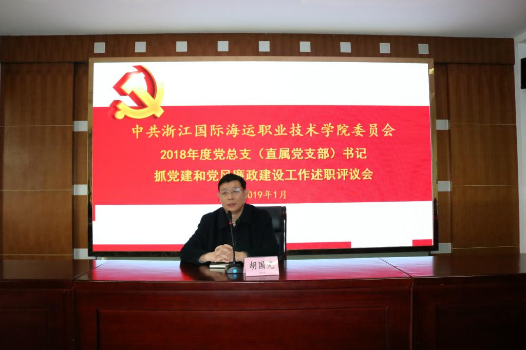 党委副书记胡国光对各党总支(直属党支部)书记的述职报告进行了现场点评。他充分肯定了大家在2018年党建与党风廉政建设工作中取得的成绩,指出了当前工作中存在的问题,并就进一步强化基层党组织抓党建工作提出新要求。他指出,各党总支(直属党支部)书记要以这次述职会为新起点,抓好工作落实,不断提升基层党组织建设质量,以高质量党建引领保障学校高质量发展。