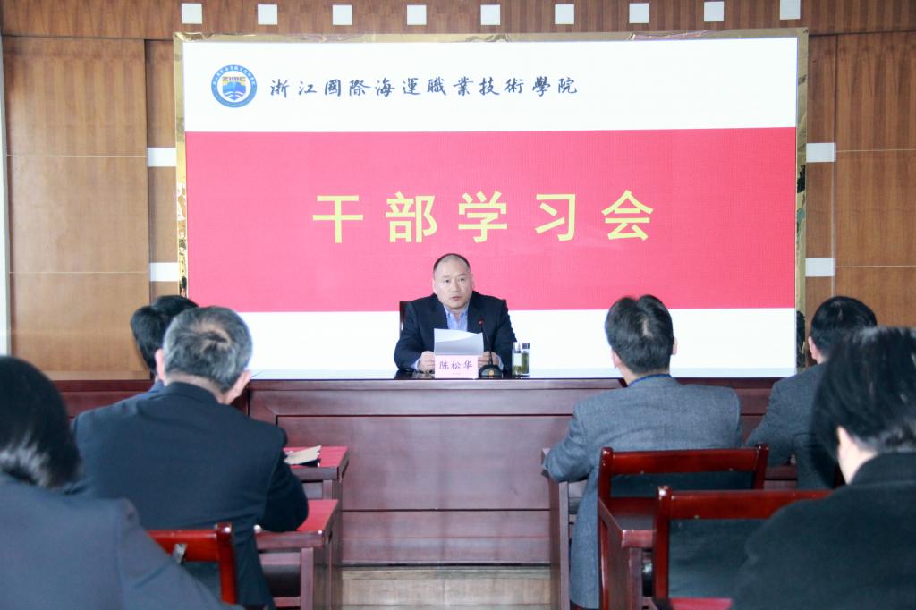 3月19日下午,学校在行政楼401会议室召开干部学习会,传达学习全国“两会”精神和省、市领导干部会议精神。校党委书记陈松华主持学习会,学校中层及以上领导干部参加会议。