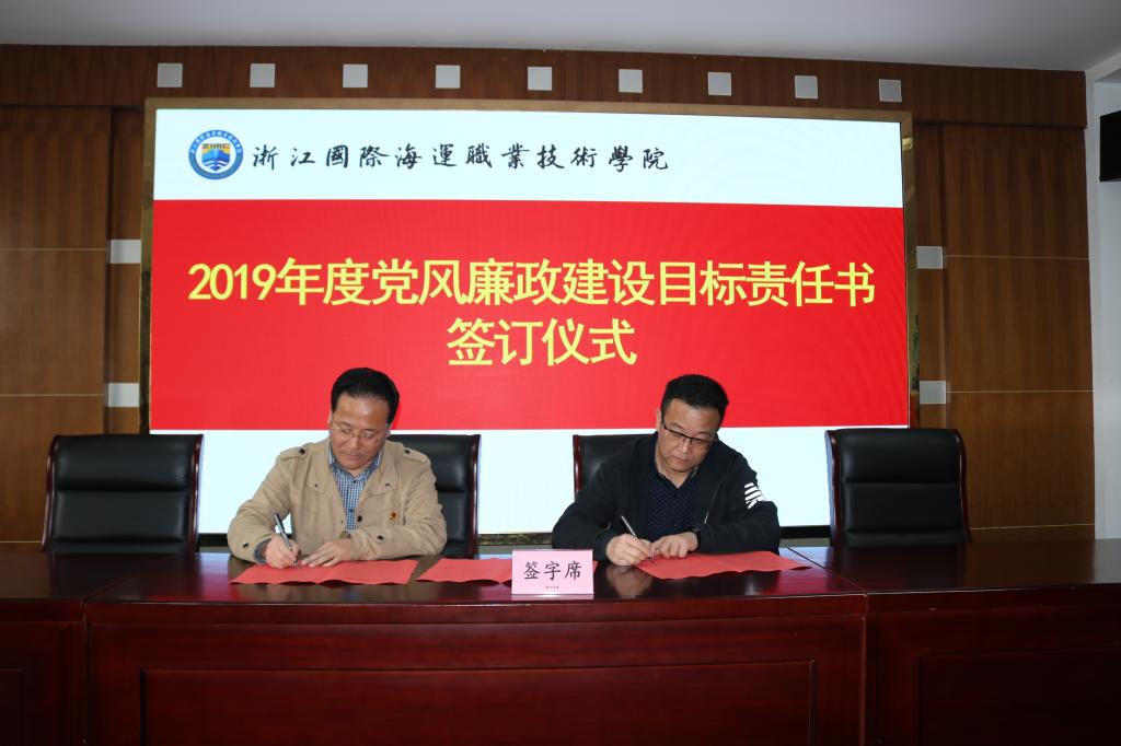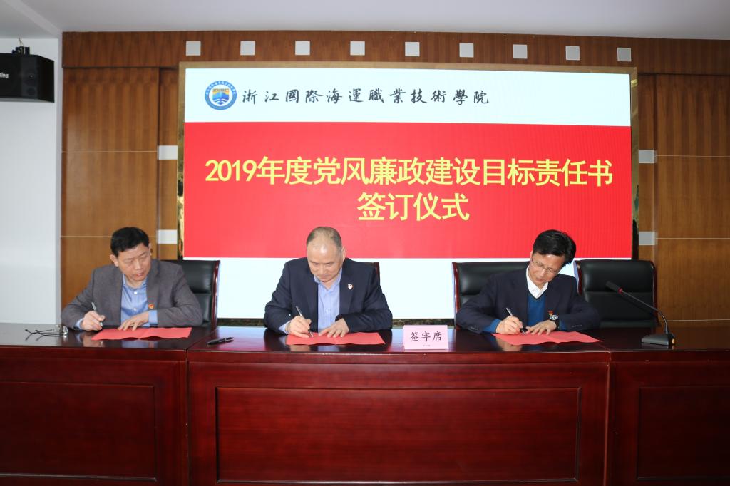 会上,学校党委书记与校长,党委书记、校长与党政班子其他成员,党委书记、校长与二级学院院长、书记,党政班子其他成员与分管部门负责人等不同层级分别签订了2019年度党风廉政建设目标责任书。