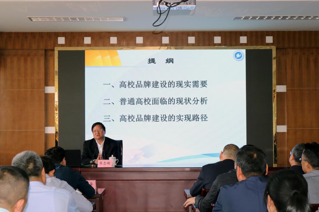 应学校邀请,苏志刚书记在我校做了“高校发展与品牌建设”专题报告,他用深入浅出的语言,鲜活生动的案例,从高校品牌建设的现实需要、普通高校面临的现状分析、高校品牌建设的实现路径三个方面阐述了高校发展与品牌建设的重要意义,阐释了高校品牌建设的发展之路,并对全国教育大会召开以来当前职教改革的新形势、新任务、新思想、新理念做了详细的解读,为我校提供了有益的借鉴。
