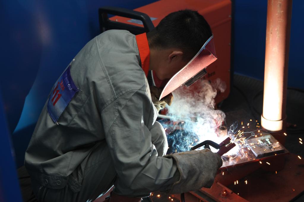 作为经典的轮机员技能展示项目,金工工艺要求选手们利用车、钳、焊工艺,在150分钟内加工一块带孔盲板和一只带管子的法兰,要求安全操作、符合规范,工艺良好,分工协作并动作迅速。各个院校队选派5名轮机专业学生,分别完成气割、车工、焊接、钳工和装配。下午,我校选手顺利完成该赛项,最终成绩须待明天另外8支院校队比赛结束后揭晓。