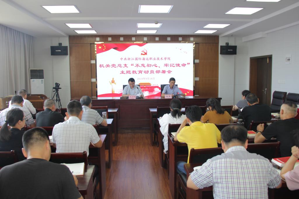 航海工程学院党总支在国际海员培训楼西侧报告厅召开“不忘初心、牢记使命”主题教育动员部署会议