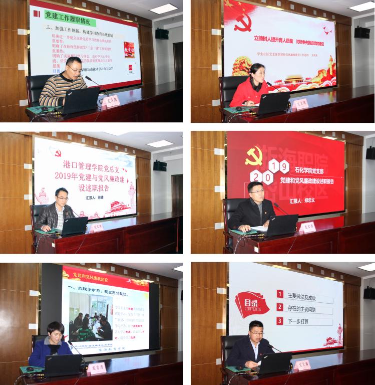 在听取了各党组织书记述职后,党委委员、副校长孔志光代表学校党委做了点评和总结。他充分肯定了各基层党组织一年来抓党建与党风廉政建设工作取得的成绩,并就下一步贯彻落实中央、省委、市委部署要求,抓好新时代基层党建工作提出了几点要求:一是要在理论武装上求提升。引导广大党员干部群众用习近平新时代中国特色社会主义思想武装头脑;二是要在基层党建工作上求突破。用主题教育取得的成效推动学校不断发展,持续在提升基层党组织的组织力和政治功能上下功夫,推动基层党组织全面进步、全面过硬;三是要在抓实思政工作上求深化。着力抓好思想政治建设,牢牢掌握意识形态工作的领导权、话语权,切实把思想政治工作贯穿教育教学全过程,实现全员育人、全程育人、全方位育人;四是要在全面从严治党上求长效。加强党员作风建设和师德师风建设,建设风清气正的校园政治生态,不断推进清廉海运建设。他指出,各级党组织和广大师生党员要不忘初心、牢记使命,脚踏实地、砥砺前行,以更加出色的成绩迎接学校第二届党代会的召开。