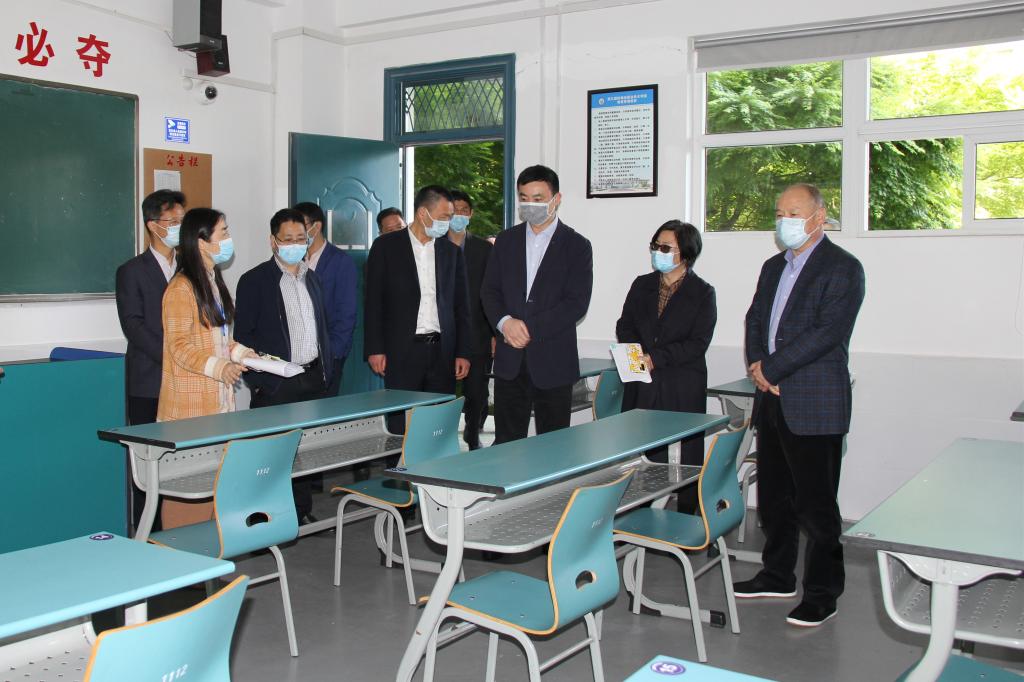 为进一步做好2020年春季返校开学准备工作和开学后的新冠肺炎疫情防控工作,4月28日下午,舟山市政府副秘书长苗成武带领由市卫健委、市疾控中心、市教育局等部门组成的检查组来校核验开学返校准备工作。学校领导陈松华、吴中平、孔志光、李丽、曹志斌和相关部门负责人等陪同检查。