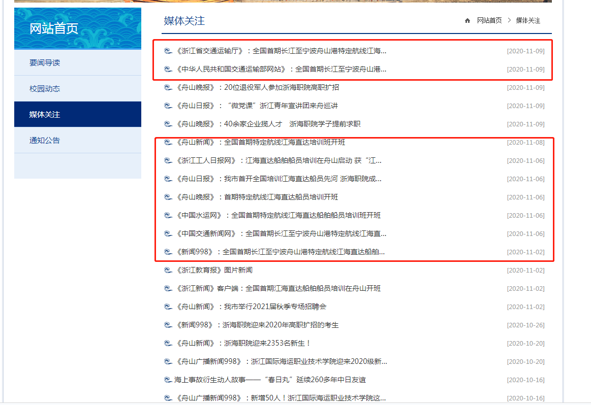 中华人民共和国交通运输部、浙江省交通运输厅、广西壮族自治区交通运输厅、舟山市人民政府的网站也刊载了相关信息,扩大了学校的知名度和影响力。