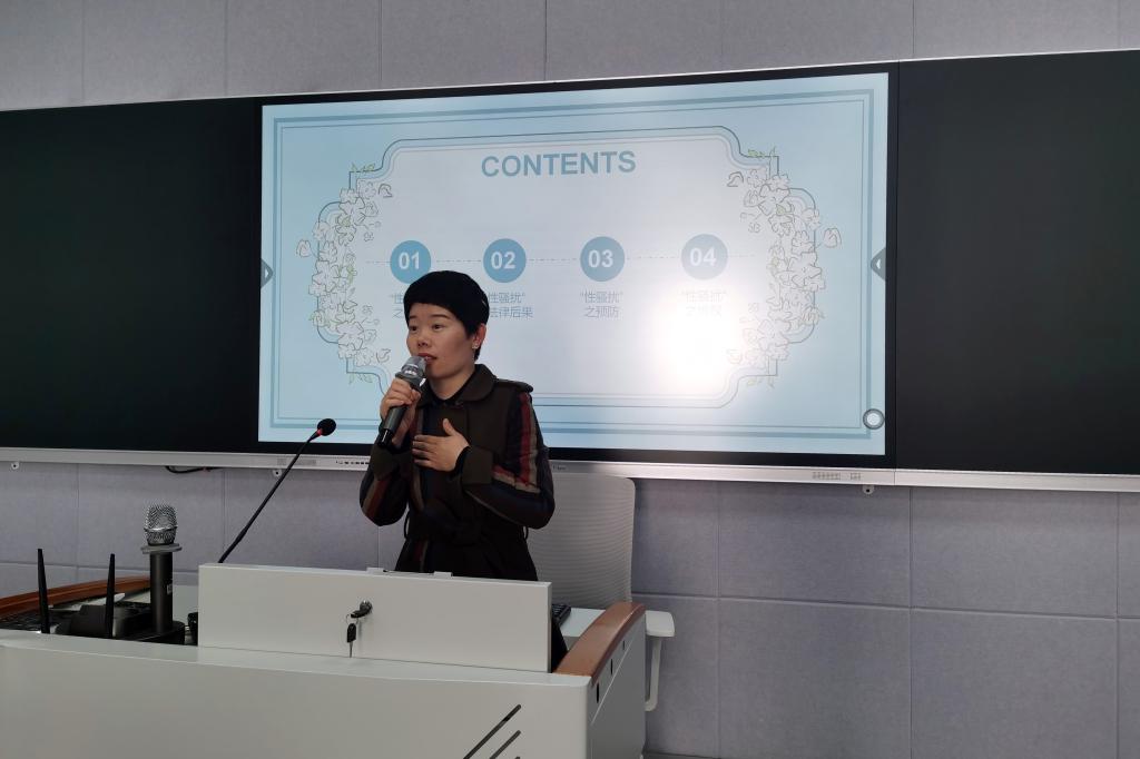 于艳律师主要讲述了女性在婚姻纠纷、家庭暴力、预防性骚扰等方面有效的法律权益维护方法,系统简明地介绍了《民法典——婚姻家庭编》相关法律条文,撑开保护女性权益的法律之伞。于艳律师特别强调了“人身安全保护令”这一民事裁定,鼓励女性面对家庭暴力时要诉诸法律保护自己。最后,她就预防性骚扰的问题进行讲解,结合案例,教导大家预防性骚扰的方法,并再次强调“依法维权”的重要性。于艳律师言情恳切,同学们受益良多。本次讲座,进一步提升了我校女生的法律维权意识,为营造“法治”“平安”校园氛围提供坚实基础。