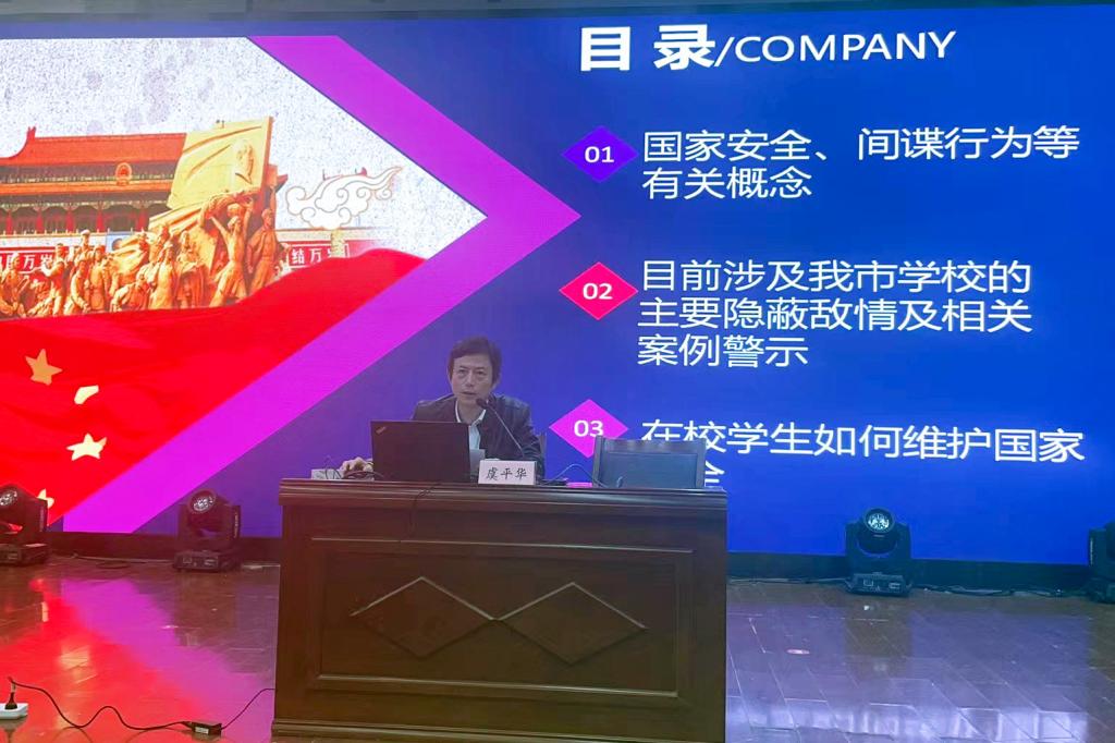 4月12日,学校邀请了舟山市定海区政法委副书记虞平华为全校师生讲授国家安全知识。虞副书记介绍了《国家安全法》《反间谍法》、近十年来舟山地区高校学生涉及隐蔽敌情案例分析以及在校学生如何维护国家安全等方面的内容,并结合工作经验,重点讲解了大学生面对危害国家安全行为如何善于斗争、敢于斗争,告诫学生要时刻绷紧国家安全这根弦,以高度的自觉性维护国家安全和社会的和谐稳定。