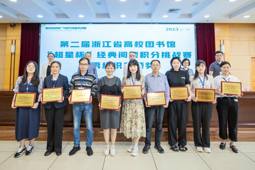 524日,浙江省高校图书馆读者服务研讨会在浙江丽水学院召开,主办方在会上公布了第二届(2023)浙江省高校图书馆“超星杯”经典阅读积分挑战赛”最终比赛结果,我校图书馆荣获“优秀组织奖”。