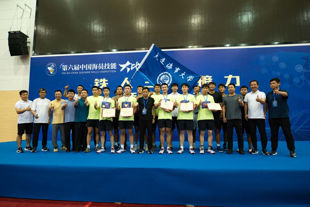 铁人三项接力是大比武中最具观赏性、竞技性和实用性的赛事。每支参赛队派出5名选手进行游泳50米、拖带15公斤重的模拟溺水橡皮人回游50米和攀越救生绳网三个项目接力,拼的是选手们的体力和毅力。此起彼伏的呐喊声、欢呼声中,18支航海院校队的选手们在水中奋勇争先,上演了一场场争分夺秒的“海上救援”。经过激烈的角逐,大连海事大学、江苏航运职业技术学院、上海海事大学摘得比赛院校组的冠亚季军,我校获得了院校组第9名的好成绩。