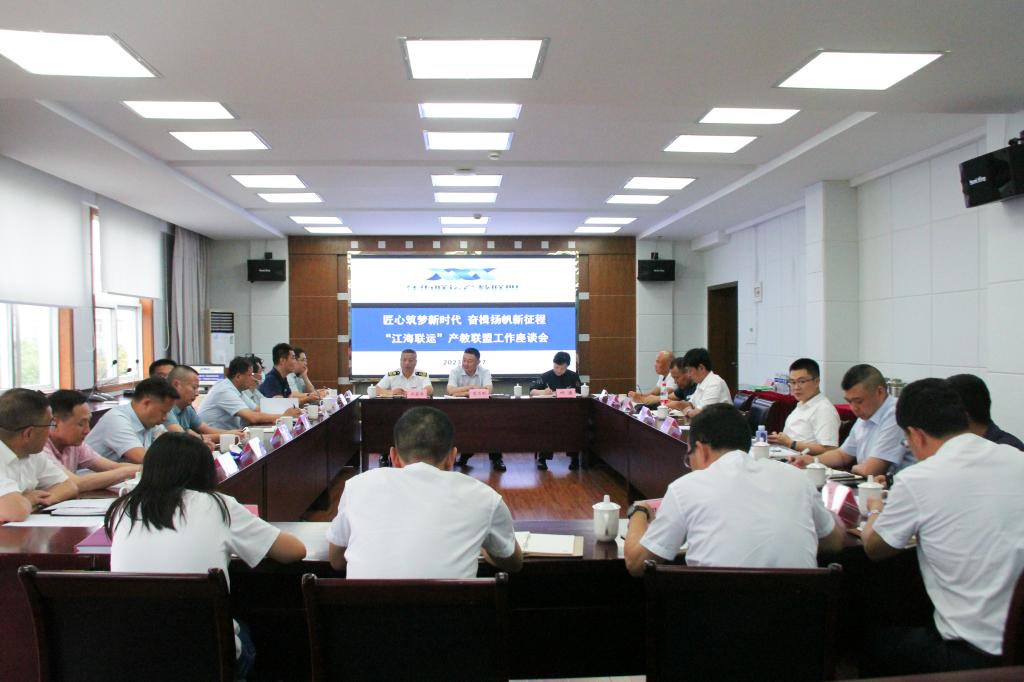 6月27日下午,作为第六届中国海员技能大比武配套活动之一的“江海联运”产教联盟工作座谈会在我校顺利召开。来自政府机构、行业企业及航海院校等14家单位代表参加,校长吴中平,校党委委员、副校长夏志刚出席会议,会议由科研与合作处副处长叶盛主持。