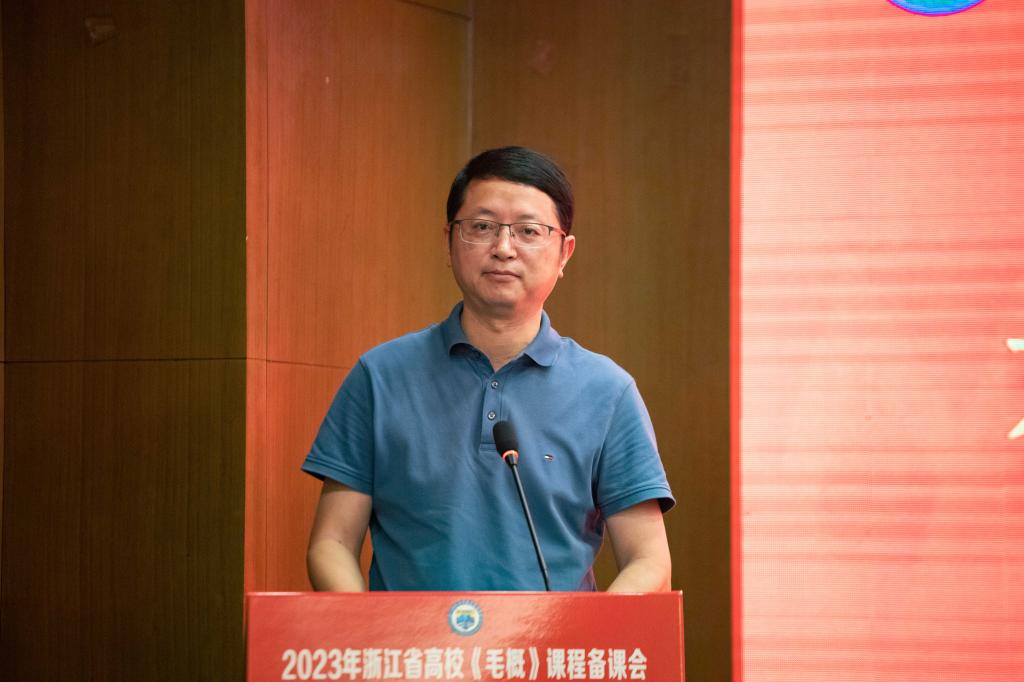学校马克思主义学院院长郑忠义简要介绍了马院思政课教学改革创新概况、舟山市大中小学思政课一体化基地建设工作和会议筹备情况。
