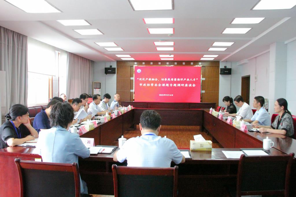 9月14日,市政协主席王伟、副主席董文平、秘书长罗岱生等一行来校就“优化产教融合,培养高质量海洋产业人才”开展主题调研,学校党委书记苏为泽陪同调研。