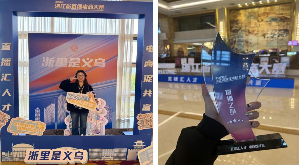 在学校致远创业学院、现代港口贸易学院领导们的大力支持下,充分发挥学校大学生创业园的辐射作用,为学生提供辅导、培训和实践的机会,由现代港口贸易学院罗兰老师指导,我校2021级商务英语1班郑奕楠同学与大舟山达人娜娜、运营小郑、奋斗传媒达人马秀两支团队合作代表舟山出战。初出茅庐但不畏强手,作为年龄最小的参赛选手和非专业学生,利用实习期休息时间,反复与老师沟通,和团队复盘训练,最终成功获得省2023电商直播大赛“直播之星”优胜奖。(致远创业学院、现代港口贸易学院)