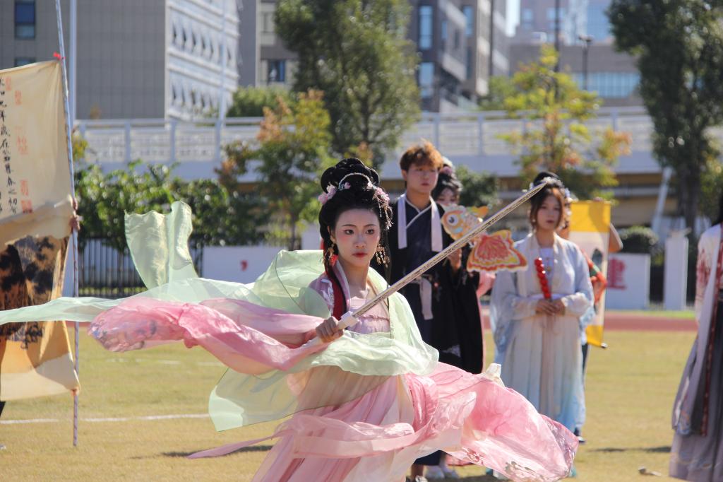 在动感活力的开幕式表演环节,校领导和师生们欣赏了啦啦操、旗语、船拳、国风秀等集体表演。精彩的演出充分展示了海运学子青春激昂的精神风貌,赢得了观众阵阵欢呼,现场气氛热烈。