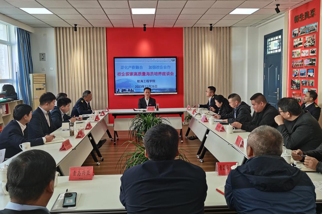 学院还邀请了16家与学校紧密合作的航运企业举行了座谈会。吴中平校长与学院行政班子及16家企业代表出席会议,会议由航海工程学院院长汪益兵主持。会上,校企双方就往届毕业生在企业的发展现状、海员心理健康、身体素质、现代学徒制开展以及校企合作培养高质量海员进行了深入探讨和交流。吴中平校长认真听取了企业代表提出的建议和要求,对企业长期给予的支持表达了感谢,并表示学校将一如既往的加强校企合作,深入开展教育教学改革,加强学生技能和综合素质培养,不断提升教育教学水平,提高人才培养质量,为企业输送更多高质量的航运人才。
