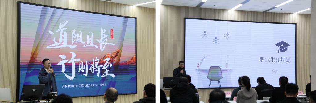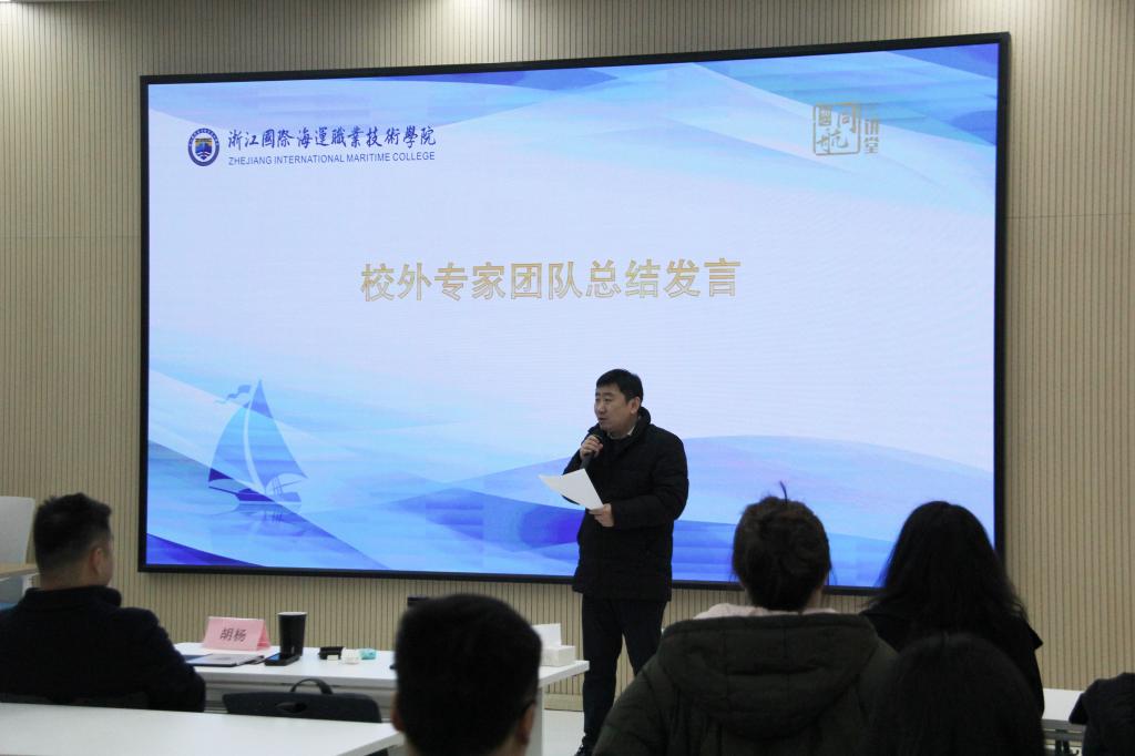 在随后的职业生涯规划交流环节,航海工程学院的李志祥和许长青,现代港口贸易学院的刘洲南和徐明伟,海洋旅游学院的孙含笑、文化体育部的王亚鹏等6名教师代表分别就自我认知分析、岗位认知、未来几年发展定位目标、如何落实个人发展规划等职业生涯规划内容做了汇报交流。汇报交流结束后,杭州职业技术学院许普乐教授代表校外专家组进行精彩点评,同时也提出四点殷切期望:一是要对教书育人工作充满热情;二是要加强职业教育的理论、职业教育的规律、课程开发的方法等方面的学习;三是要提升课堂的驾驭能力、课程开发的能力、教学研究的能力、编写教材的能力;四是眼里要有学校,心里有学生,教师个人的发展要与学校的发展同向同行。