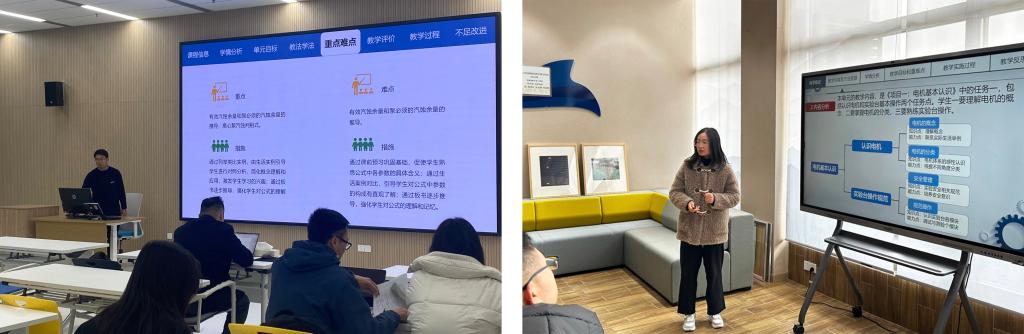 在交流分享环节,教师们逐个进行了一学时单元教学设计的汇报交流。35名参训教师分为3组,根据自己的课程内容,精心准备,结合前期专家点评意见进行优化提升,充分展示了研习成果,展现了我校新进青年教师的风采。校外专家组分别从教师仪态、PPT制作、教学目标、重难点、教学方法、教学总结、教学反思、课程思政等方面对每一位教师的教学设计进行了细致的点评和指导。