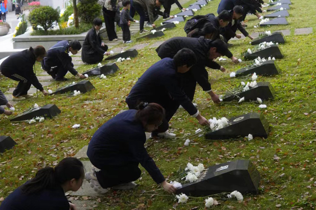 4月4日,石油化工学院组织40名师生代表以及“平安守护联盟”社团成员前往岱山县石马岙烈士陵园开展清明祭英烈活动。
