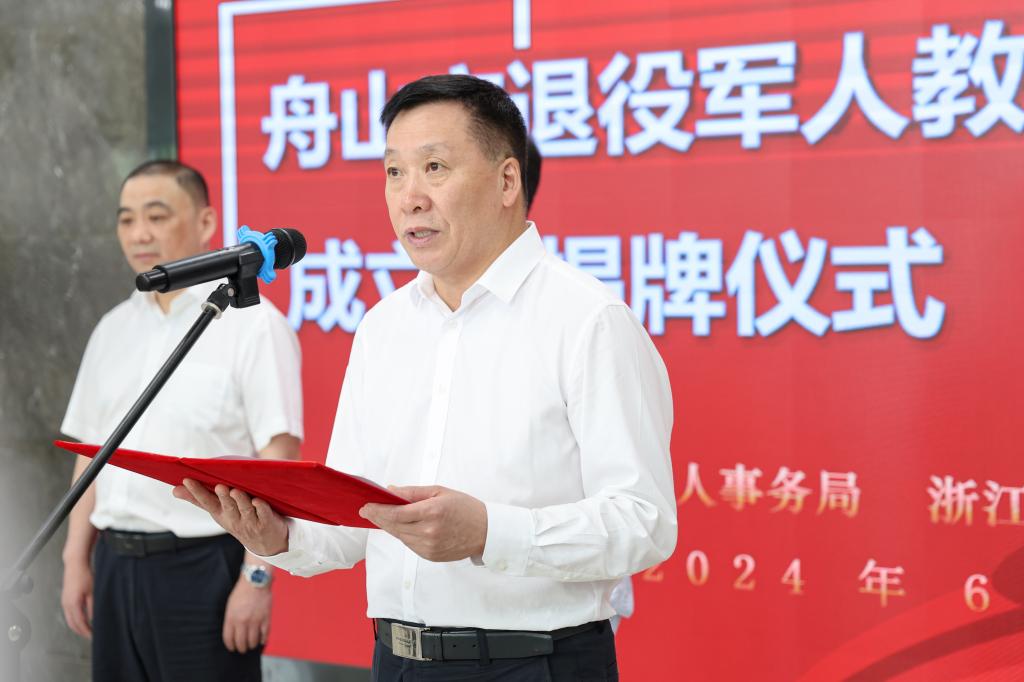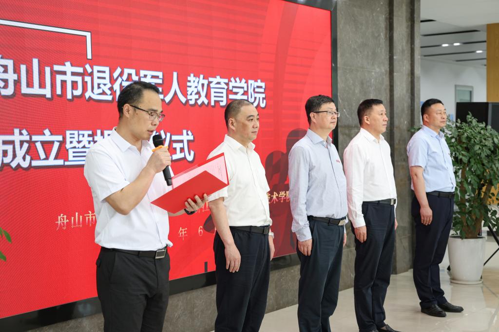 6月5日,舟山市退役军人教育学院在我校挂牌成立。舟山市退役军人事务局党组书记、局长李昌,副局长张杰波,校党委书记苏为泽、副院长夏志刚等领导及市、县(区)退役军人事务局分管领导、学校相关部门负责人、退役大学生代表参加了揭牌仪式。