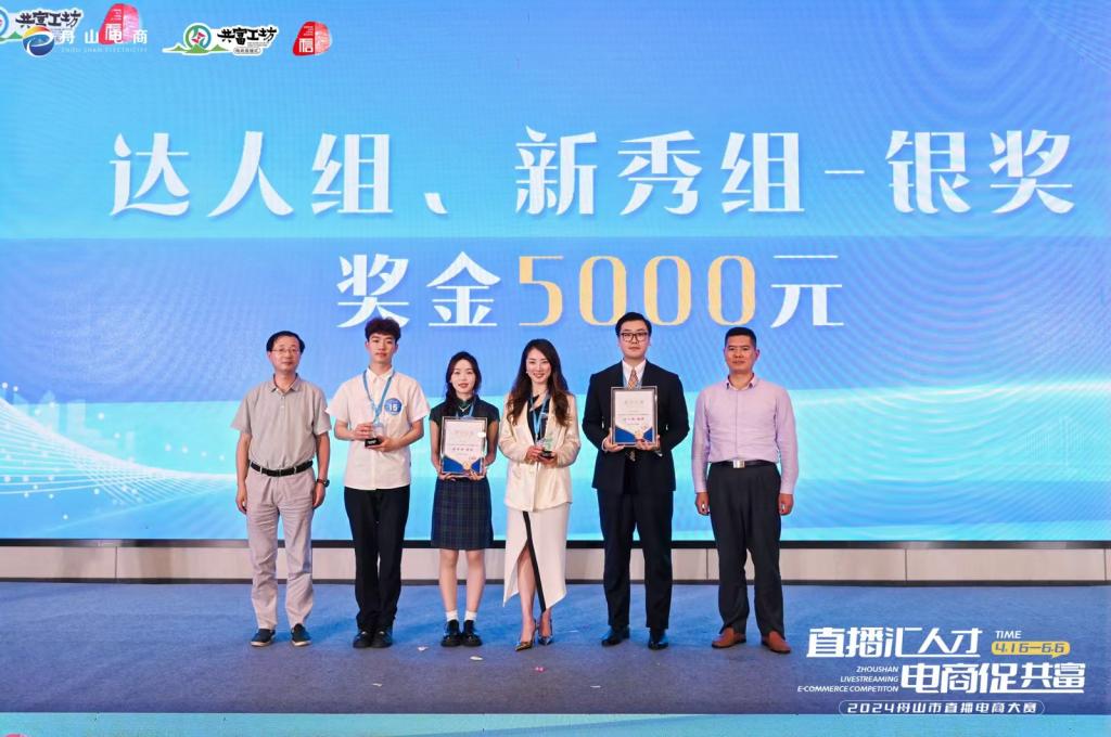 66日,2024年舟山市直播电商大赛决赛在舟山财富大酒店盛大举行。在这场激烈的角逐中,我校现代港口贸易学院代表队表现出色,荣获新秀组银奖一项和新秀组直播新星奖两项,展现了学院在电商领域的教育成果和学生的专业实力。