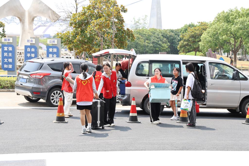 2024级新生们在志愿者的带领下,有条不紊地办理入学手续。校门、报到处、食堂、宿舍楼……在各服务点,志愿者们以满腔的热情、细腻的关怀,为新生及家长提供最暖心服务。从详尽的路线指引到贴心的行李搬运,从入学手续办理引导到各种答疑解惑……忙碌的身影成为了校园里最美丽的风景线,细致的安排也获得了一致好评。