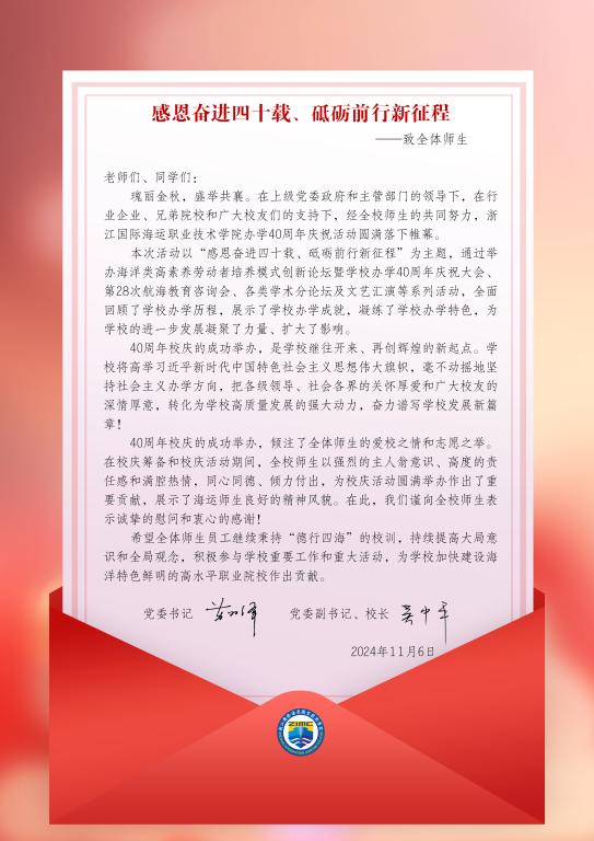 感恩奋进四十载 砥砺前行新征程——致全体师生