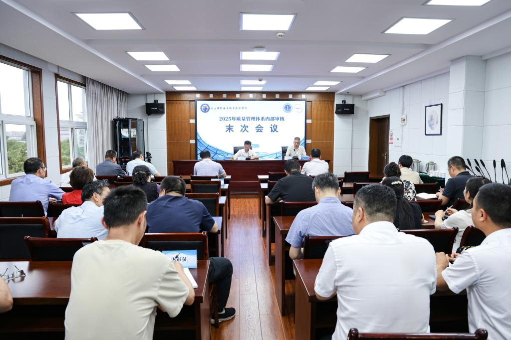 6月11日,学校2025年质量管理体系内部审核末次会议在行政楼401会议室召开。分管校领导、体系受控部门负责人和审核员参加会议,学校最高管理者、校长吴中平出席会议并作总结讲话。本次内审重点检查了K0版质量管理体系运行情况、新修订的《〈中华人民共和国船员培训管理规则〉实施办法》以及学校年度重点工作开展落实情况。