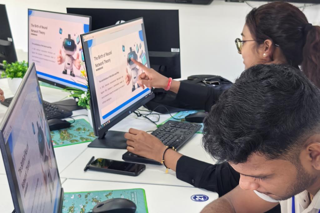 本次来访的马来西亚留学生就读于我校大数据技术(人工智能)专业。一周内,他们系统学习了大数据导论、AI文案创作与基础操作等核心课程,并积极参与实验操作与项目讨论,在理论与实践的结合中逐步建立专业认知框架。