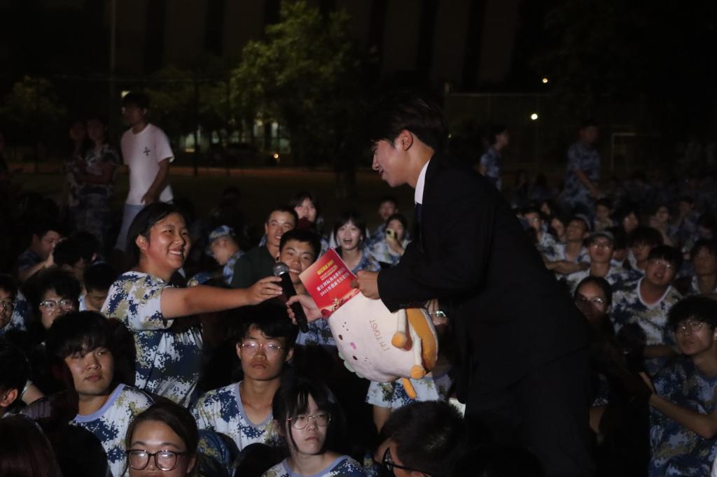 为丰富活动层次、强化互动体验,比赛过程中穿插了多元文艺表演与互动环节。校艺术团带来的舞蹈《如愿》,以灵动舞姿演绎先辈夙愿与当下盛世的呼应,让观众在柔美韵律中感悟今日中国的国泰民安;“知识问答”环节围绕抗日战争历史事件与学校发展历程设计题目,新生们踊跃举手、积极作答,在问答间重温红色记忆、深化对学校的认同感;“摇一摇快乐大比拼”则以趣味互动形式,让新生通过扫码参与实时竞技,在欢快氛围中释放青春活力、拉近彼此距离,进一步增强了新生群体的凝聚力。