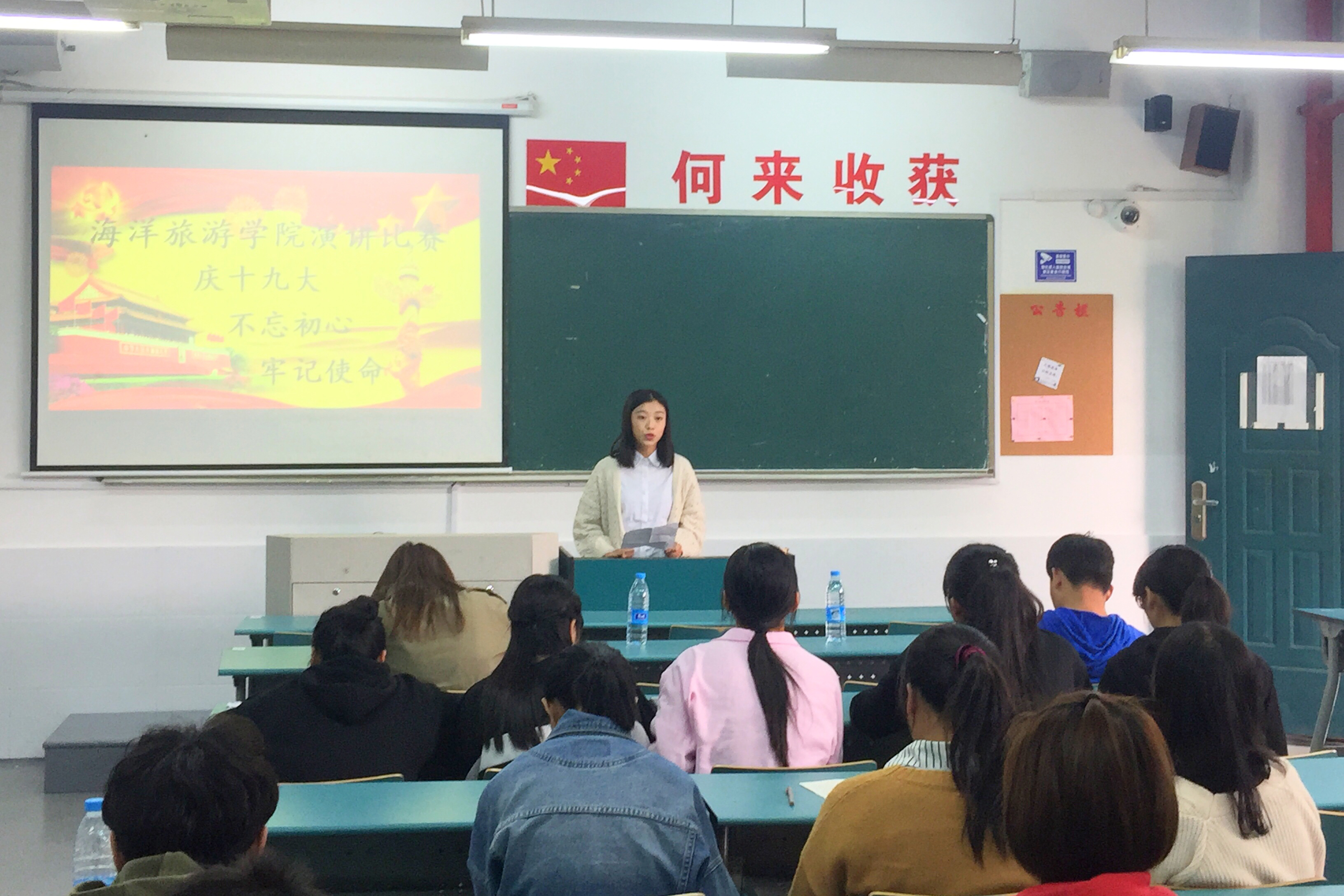 11月10日下午,海洋旅游学院举办“庆十九大,不忘初心、牢记使命”主题演讲比赛。32名同学参加比赛。