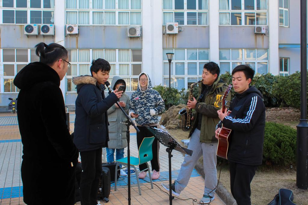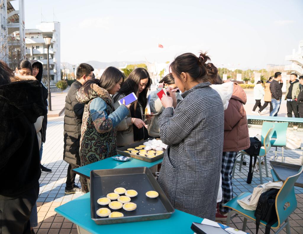 此次活动为线上与线下相结合:线上通过点赞留言,广大师生表达了对海韵新青年微信平台的喜爱和祝福;线下各大社团前来助阵:美食社大展身手,为前来参加活动的同学送上了精美的糕点;弦心社的现场弹唱表演,将现场活动的气氛推向一波又一波的高潮……