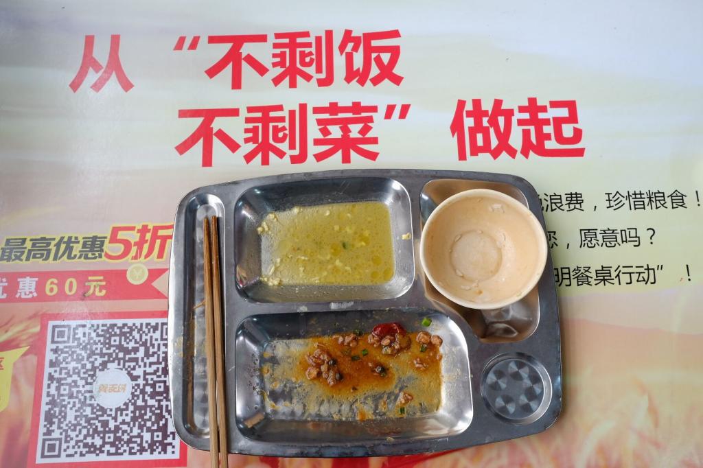 3月17日中午,一场特殊的“光盘行动”志愿者活动在学生食堂举行,20名报名参赛的同学不仅吃光了餐盘中的食物,连餐碗也“一并下肚”,这让在旁边就餐的同学们对“光盘行动”有了新的认识,大家都表示自己会认真践行光盘行动,做到勤俭节约、不浪费。
