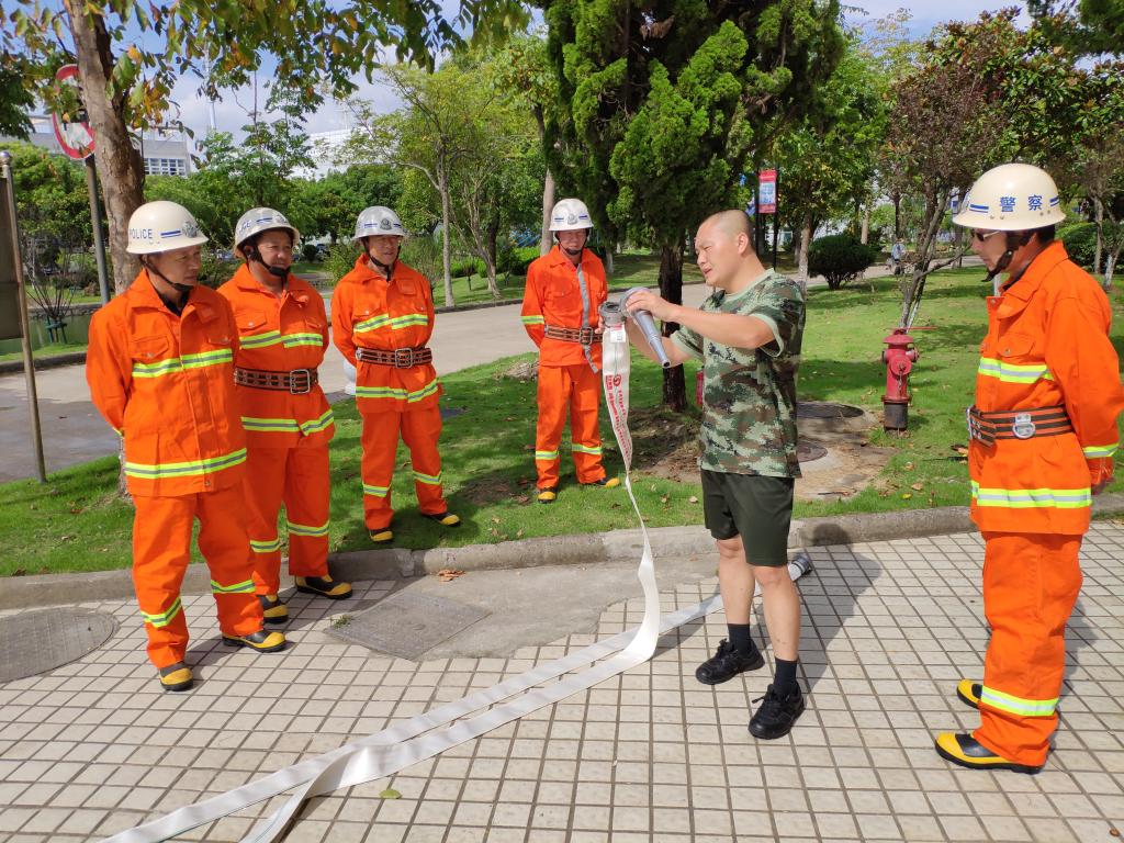 新城消防大队阮教官向消防员们提出了“一分钟确认火警;三分钟现场处置,五分钟配合消防官兵”的微型消防站人员工作要求,讲解了消防栓操作、消防装具穿着和使用方法等,现场还组织消防员进行了消防水带展开及收拢等训练。