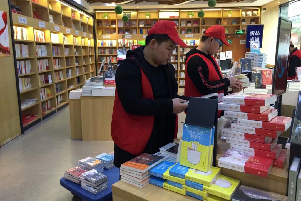 学生志愿者肩负全校师生重托,面对现场浩如烟海的图书,选起书来一丝不苟、兴趣盎然,用认真负责的态度从书店几十万种图书中挑选出200多种,涵盖文学、历史、哲学、政治、经济、军事等类目的书籍,其中不乏刚出版的畅销图书和通俗读物。待经过图书查重后订阅,争取这些书籍能够早日与读者见面。
