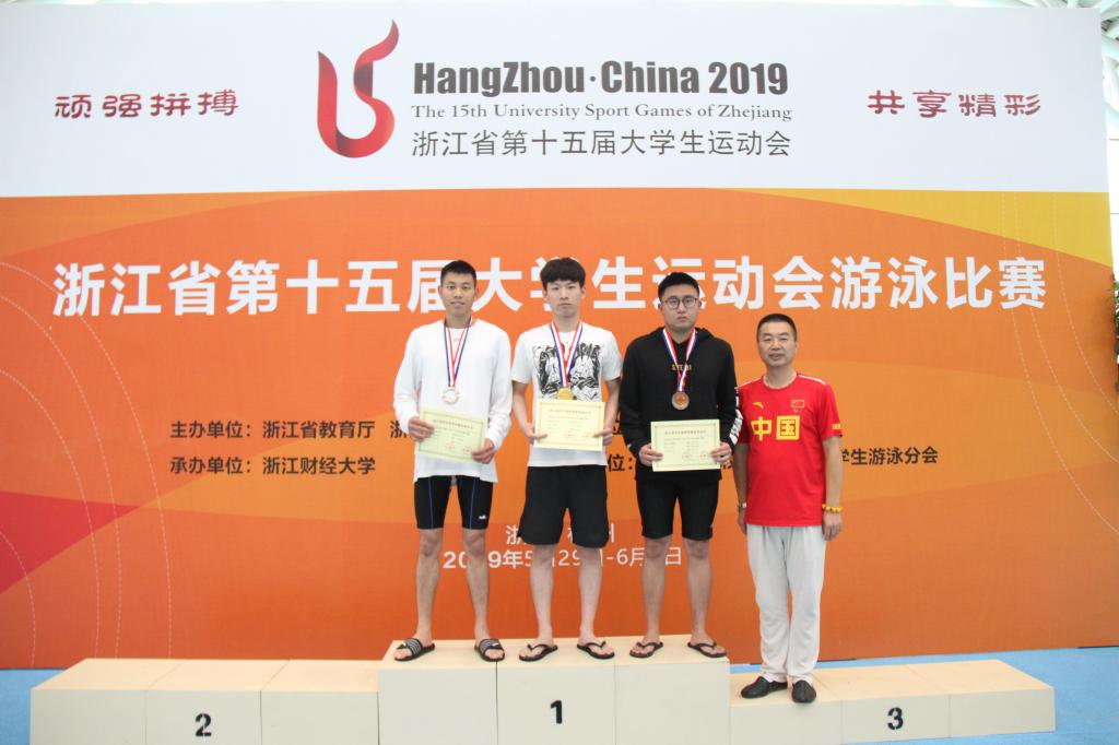 5月29日至6月2日,浙江省第十五届大学生运动会游泳比赛在浙江财经大学举行。由我校航海工程学院颜腊建、邓非凡、周啸天、沈秋伟、施挺和港口管理学院杨约瑟等6名队员组成的参赛队在周彪和孙磊两位老师的指导下积极训练备战,在比赛中喜获佳绩。