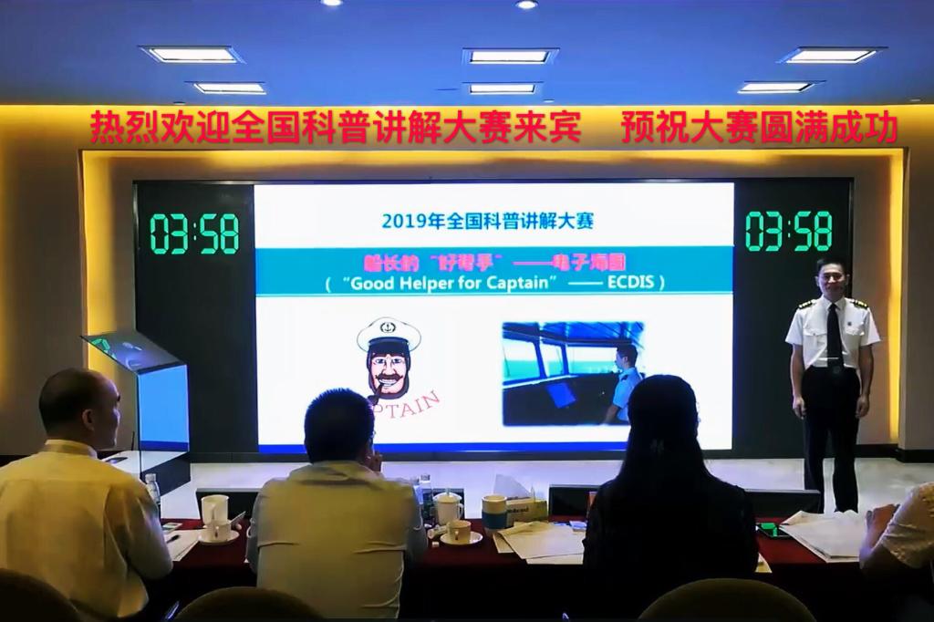 在本次大赛中,有来自国家部委、军队及地方67支代表队共223名选手同台竞技。选手们从全国各地各部门预赛中选拔产生。在决赛阶段,选手们依次上台讲解,参加自主命题讲解和随机命题讲解两个环节。其中自主命题讲解由选手自行确定一个科普主题进行讲解,而随机命题讲解主题则通过电脑随机在包括港珠澳大桥、嫦娥四号、核心技术、无人驾驶、于敏、钱七虎等20项命题中选取。我校李永广老师的自主命题讲解题目是“船长的好帮手——电子海图”。比赛中,李永广凭借其特色明显的内容陈述、精致的PPT展示、良好的表达效果和整体形象征服了现场评委,获得了现场观众的好评。