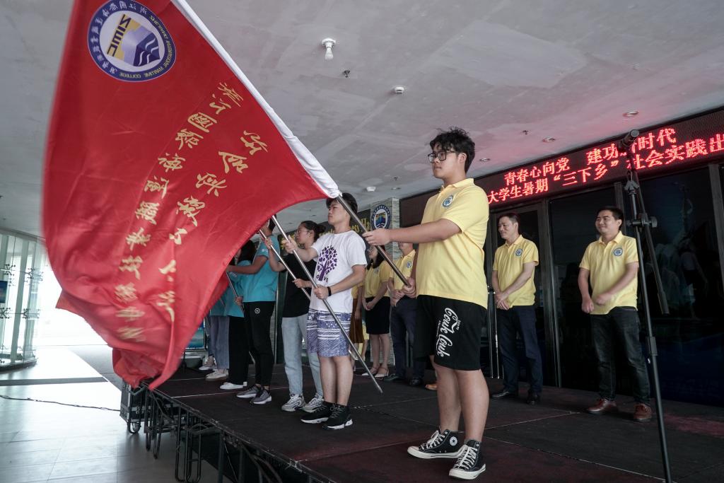 为深入学习习近平新时代中国特色社会主义思想,学习贯彻党的十九大和十九届二中、三中全会精神,引领教育广大青年学生在切实感受新中国成立70周年取得的巨大成就中增强“四个意识”、坚定“四个信念”、坚决做到“两个维护”,在加强志愿服务中增强责任感和使命感,在社会实践中受教育、长才干、作贡献,以实际行动勇于担当民族复兴大任的时代新人,今年校团委将“青春心向党 建功新时代”作为暑期“三下乡”社会实践活动的主题,并于6月27日中午在图书馆一楼举行了出征仪式。