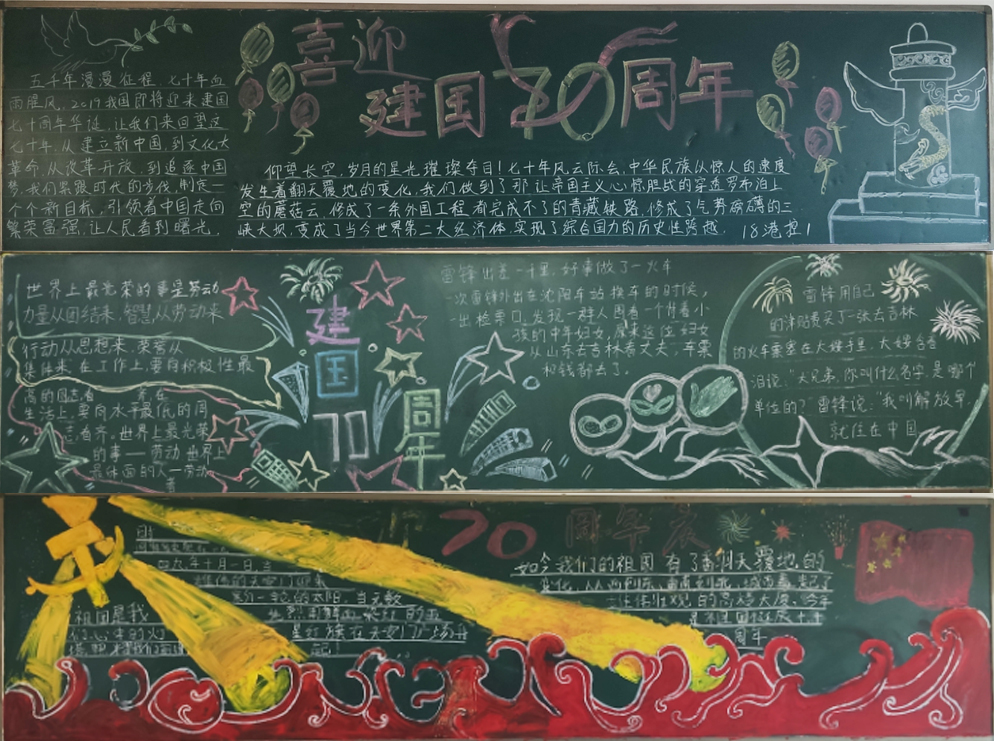 为庆祝中华人民共和国成立70周年,激发广大师生的爱国热情,诠释祖国70年来的辉煌,船舶工程学院自9月5日起开展了以“喜迎新中国成立70周年”为主题的黑板报评比。