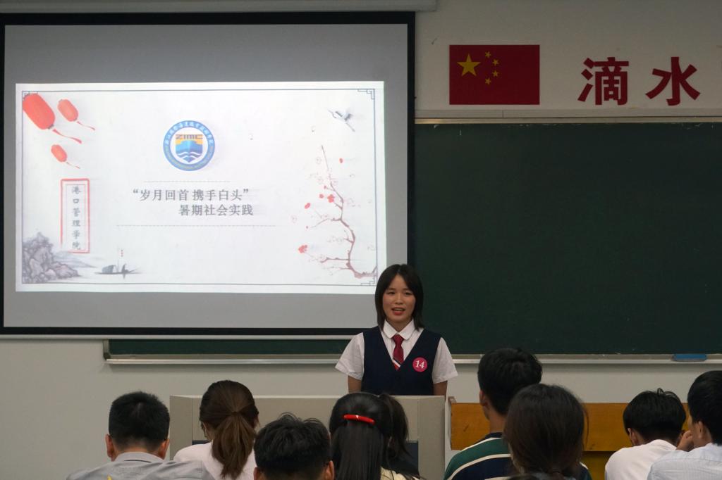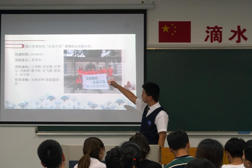 汇报会上,各团队的代表分享了他们的暑期社会实践经历和成果。经现场打分,校团委“印象杭州 文化留夏”三校夏令营暑期社会实践团、航海工程学院“情系文明 携手创城”暑期社会实践团、校团委“海运支教行,学子暖童心”暑期社会实践团、海洋旅游学院“初夏品杨梅,优选‘佳’美味”暑期社会实践团、船舶工程学院“心系新区情,服务舟图意”暑期社会实践团、港口管理学院“岁月回首,携手白头”暑期社会实践团、航海工程学院“治水梦 禹我行”暑期社会实践团、港口管理学院“走读千岛”暑期社会实践团、海洋旅游学院“乡村振兴调查”暑期社会实践调研团共9支队伍获得“优秀团队” 荣誉称号;陈涵意、竺久人等19位同学获得“社会实践先进个人”荣誉称号;廉婧、李晓璐两名老师获得“优秀指导老师”荣誉称号。
