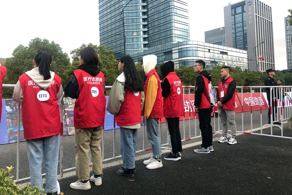 为保证提前到岗进行服务,17日早上4点30分,志愿者们已在董浩云图书馆一楼大厅集合完毕准时出发。赛前,志愿者们与工作人员一起为赛事做准备工作,疏导周围观众、媒体及参赛者;比赛时站在跑道两边进行指引,以防道路堵塞影响比赛,并负责记录跑在前面的参赛选手的号码牌;赛后,志愿者们又与工作人员一起整理场地,将比赛场地恢复原样,并辅助疏导交通。