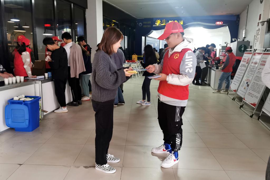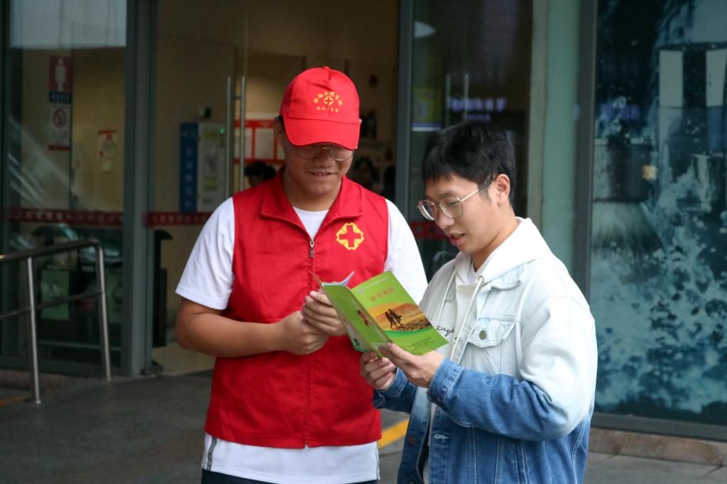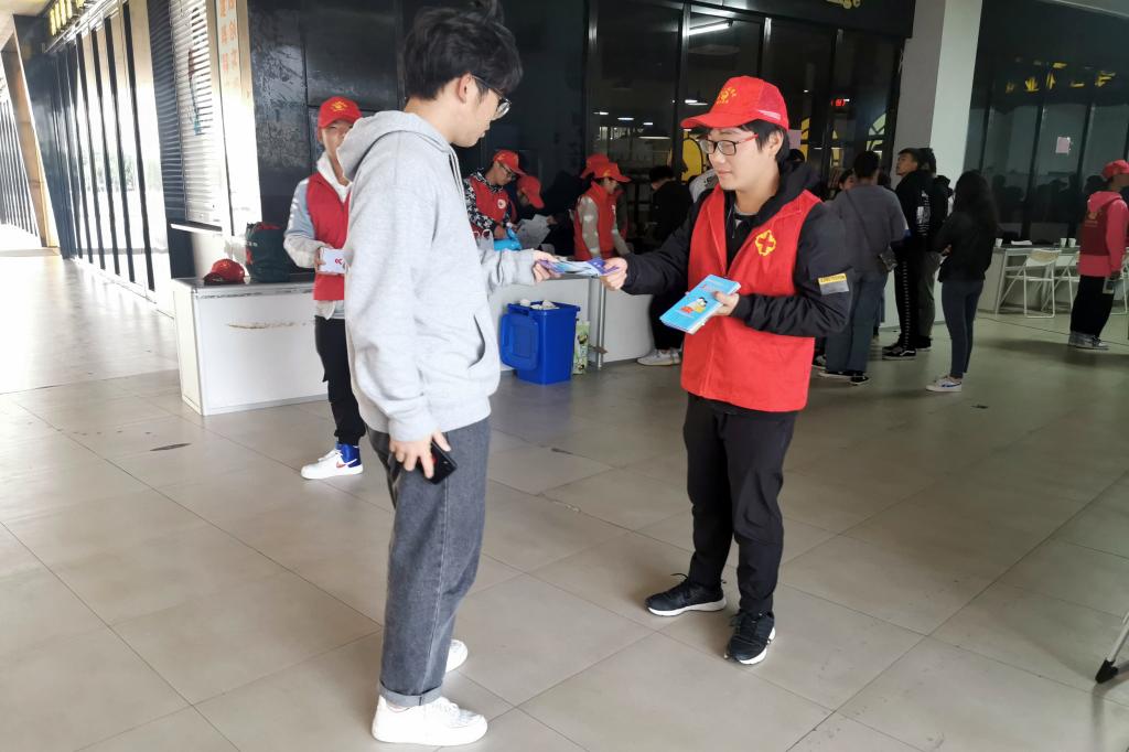11月28日下午,志愿者们在协助服务无偿献血工作的同时,在同学中开展了“防艾”知识的宣传活动。